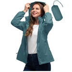 This plus size waterproof jacket is lightweight, breathable, and fully seam sealed for rainy Alaska days. Designed with a flattering fit and smart features, it even packs into its own pocket for easy travel.