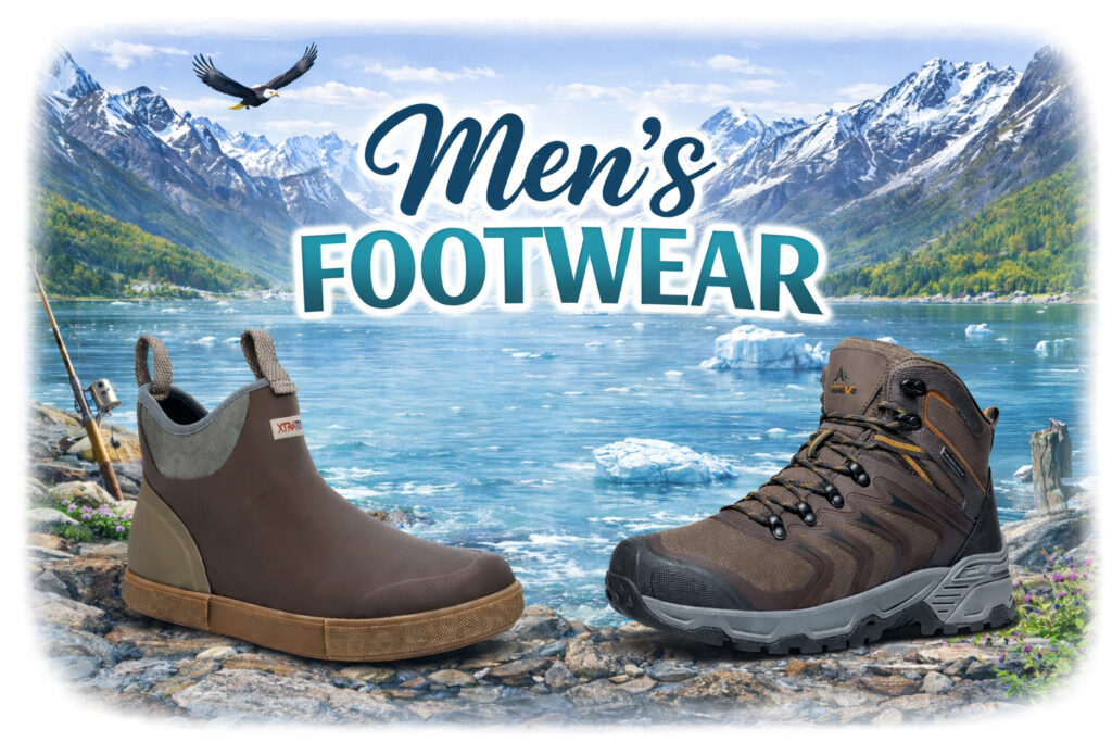Alaska’s weather can be beautiful one minute and rainy the next, so the right footwear isn’t just nice to have — it’s essential. The best pair will keep your feet dry, warm, and comfortable, whether you’re strolling through town, exploring trails, standing on a glacier, or out on a whale-watching tour.